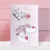 Wyjątkowa kartka wykonana z wysokiej jakości matowego, fakturoanego papieru. Na okładce znajduje się nadrukowany motyw kołyski. Uroku dodaje aplikacja w postaci satynowej kokardki. Nadruk tekstu wykonujemy na matowej wkładce w kolorze białym. Kartki wysyłamy w formie gotowej do wręczenia. Wykonane z ogromną starannością i dbałością o detale. Precyzyjny nadruk, dokładność wykonania oraz wysokiej jakości papier.