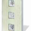 Eleganckie zaproszenie, którego okładka wykonana jest z perłowego papieru. Z lewej strony trapezowe wycięcie, w którym widoczny jest nadruk inicjałów Pary Młodej. Środek zaproszenia wykonany z kalki wywiniętej tłoczonym wzorem na okładkę. Całość połączona atłasową kokardką. Zaproszenie wykonane z ogromną starannością i dbałością o detale. Precyzyjny nadruk, dokładność wykonania oraz wysokiej jakości papier.
